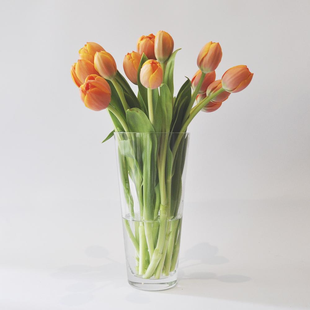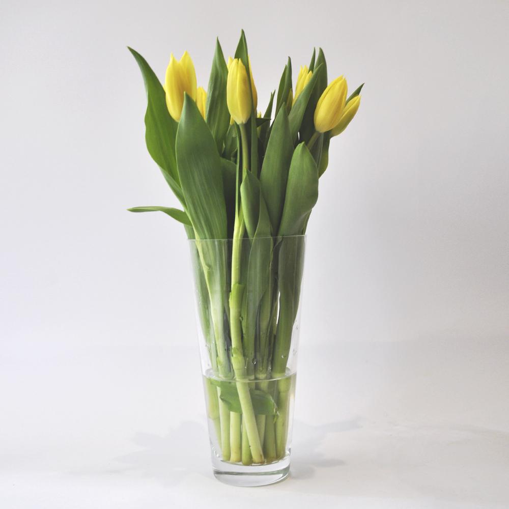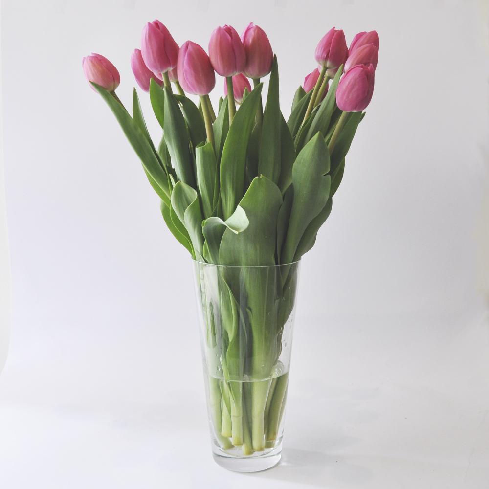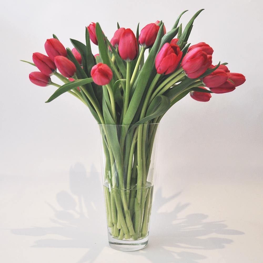 5 paquetes de 10 varas de tulipan fresco. Todas del mismo color elegido.